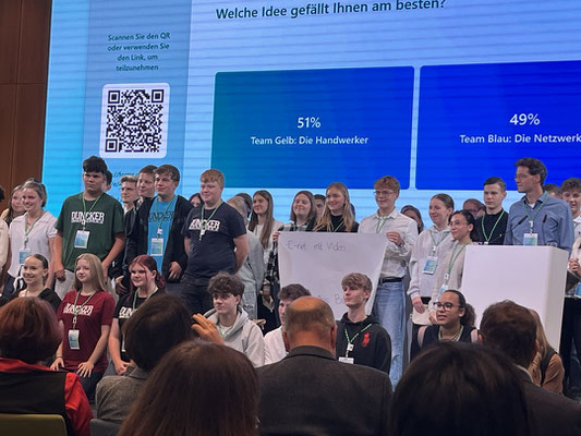 Am 23.09.2025 war bundesweiter Netzwerktag der Berufswahl-SIEGEL-Schulen in Berlin, und unsere Schule war für Rheinland-Pfalz vertreten. Rektorin Zils, Emma und Naomi aus den Klassen 9 und 10 waren mit unserem Berufswahlkoordinator Herrn Feß eingeladen, nach Berlin ins Haus der Wirtschaft zu kommen. Dort wartete ein großes Programm auf unsere Delegierten. Verschiedene Workshops standen auf dem Plan, wie "Berufswahl-Speed-Dating", neue Tools zur Berufswahl oder "Support in der BO". An vielen Schulen gestalten jetzt schon Schülerinnen und Schüler aktiv ihre Möglichkeiten der beruflichen Orientierung an ihren Schulen mit. Das sollte der Netzwerktag deutlich machen. Ziel ist der Aufbau von Kooperationen zwischen Schulen aus dem ganzen Bundesgebiet.